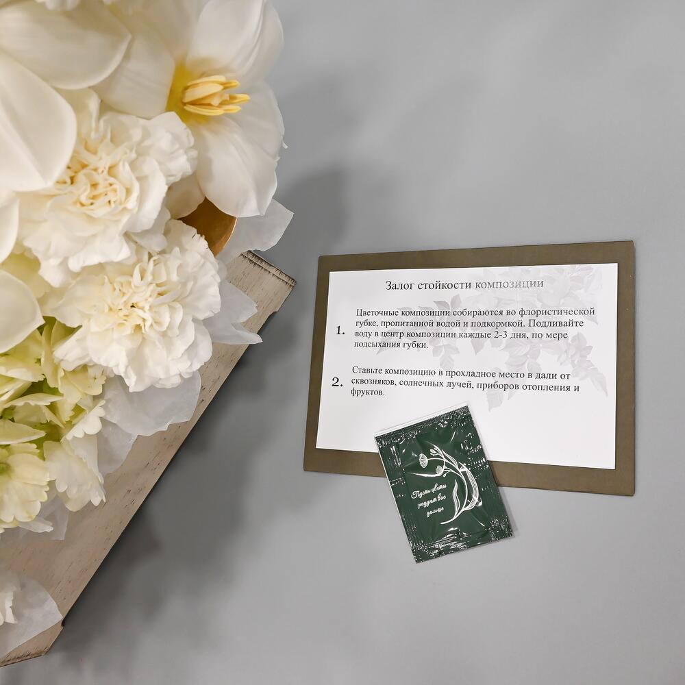 “Атлас☁️” – цветочная композиция с зефиром в деревянном ящике