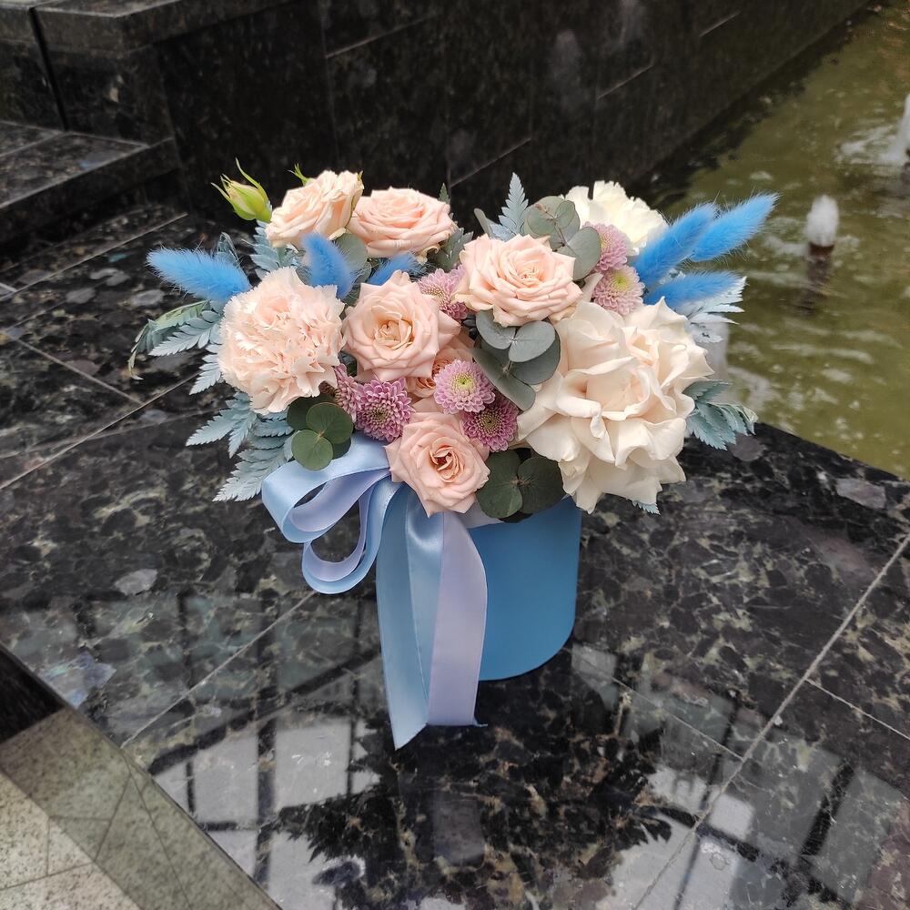 Воздушная цветочная композиция в шляпной коробке для вас и ваших близких☁️(При заказе просьба обратить внимание на размер товара)