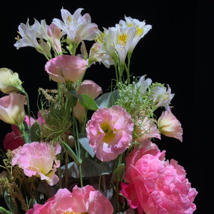 Гвоздики, Лизиантусы, Розы, Тюльпаны