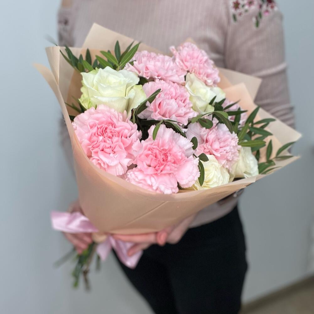 Гвоздики, Кустовые розы, Лизиантусы, Пионовидные розы, Розы