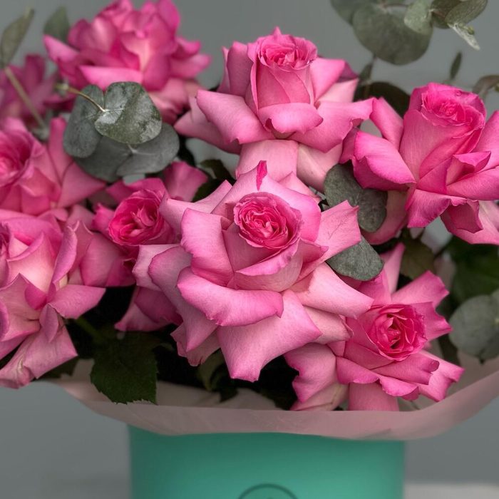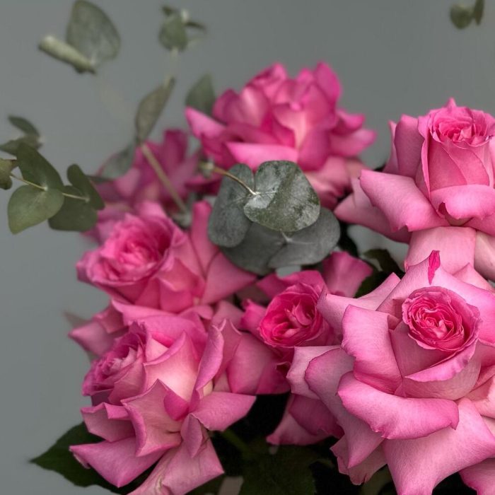 Голландская роза – 11 шт. Эвкалипт – 3 шт.