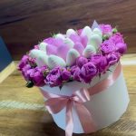 “Сладкое сердце ” – цветочная композиция с сладостями в коробке “Сердце”