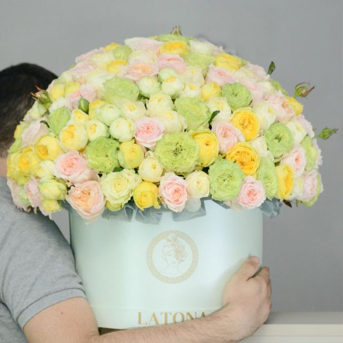 “В твоих глазах”: нежная шляпная коробка с французскими розами