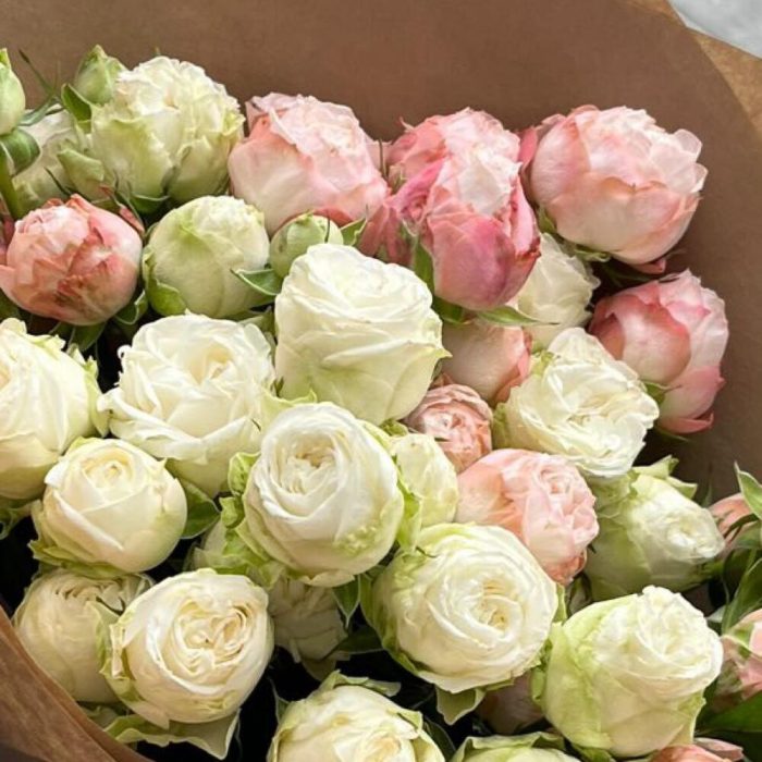 Альстромерии, Кустовые розы, Лизиантусы, Пионовидные розы, Розы, Ромашки