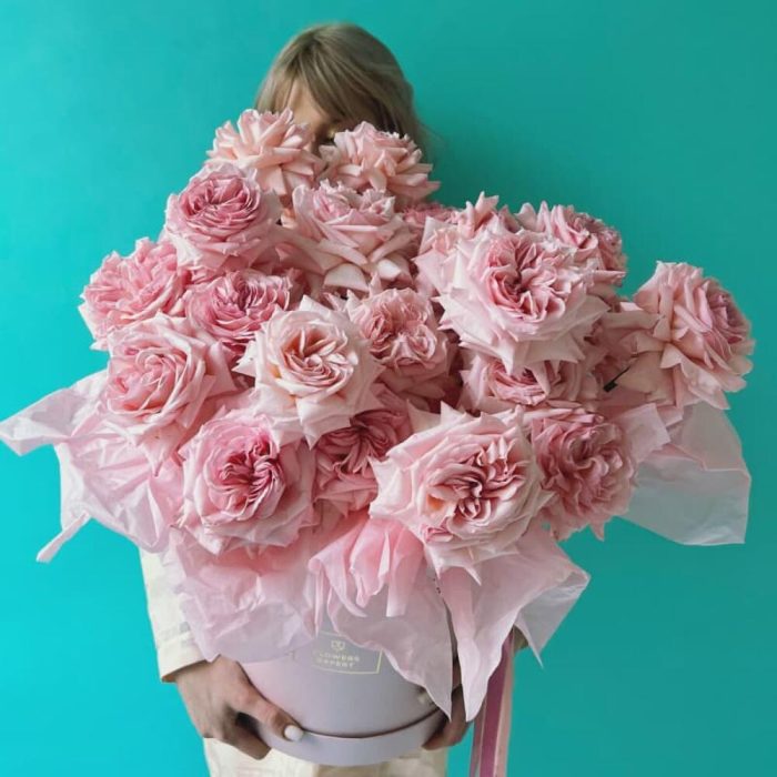 “В твоих глазах”: нежная шляпная коробка с французскими розами