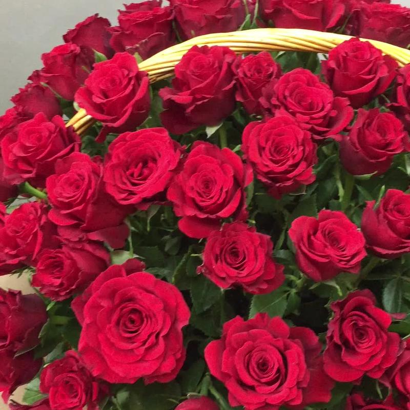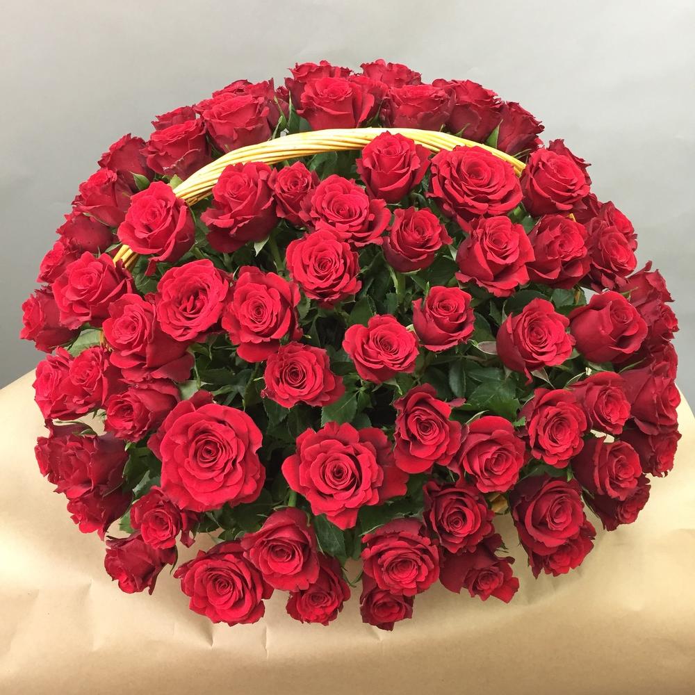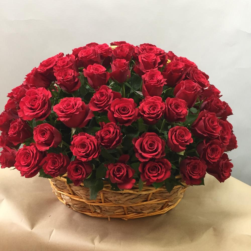 Метки: 101 роза, от 5000 руб, цветы в корзине