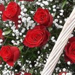 Роза красная – 75 шт.Гипсофила – 15 шт.Корзина – 1 шт.фисташка банч – 1 шт.