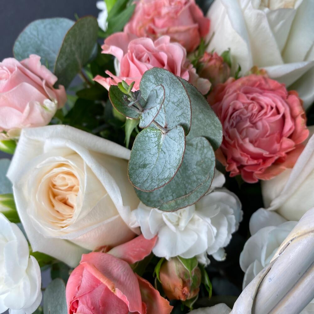 Корзина плетёная с белыми розами