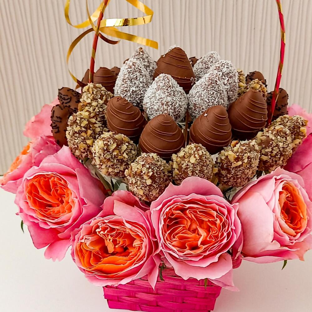 Корзина розы и клубника