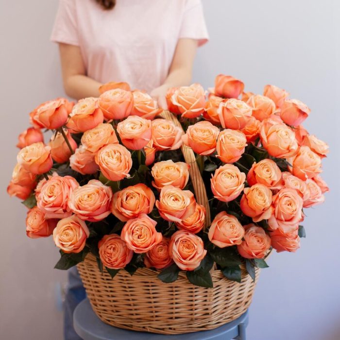 Метки: 101 роза, от 5000 руб, цветы в корзине