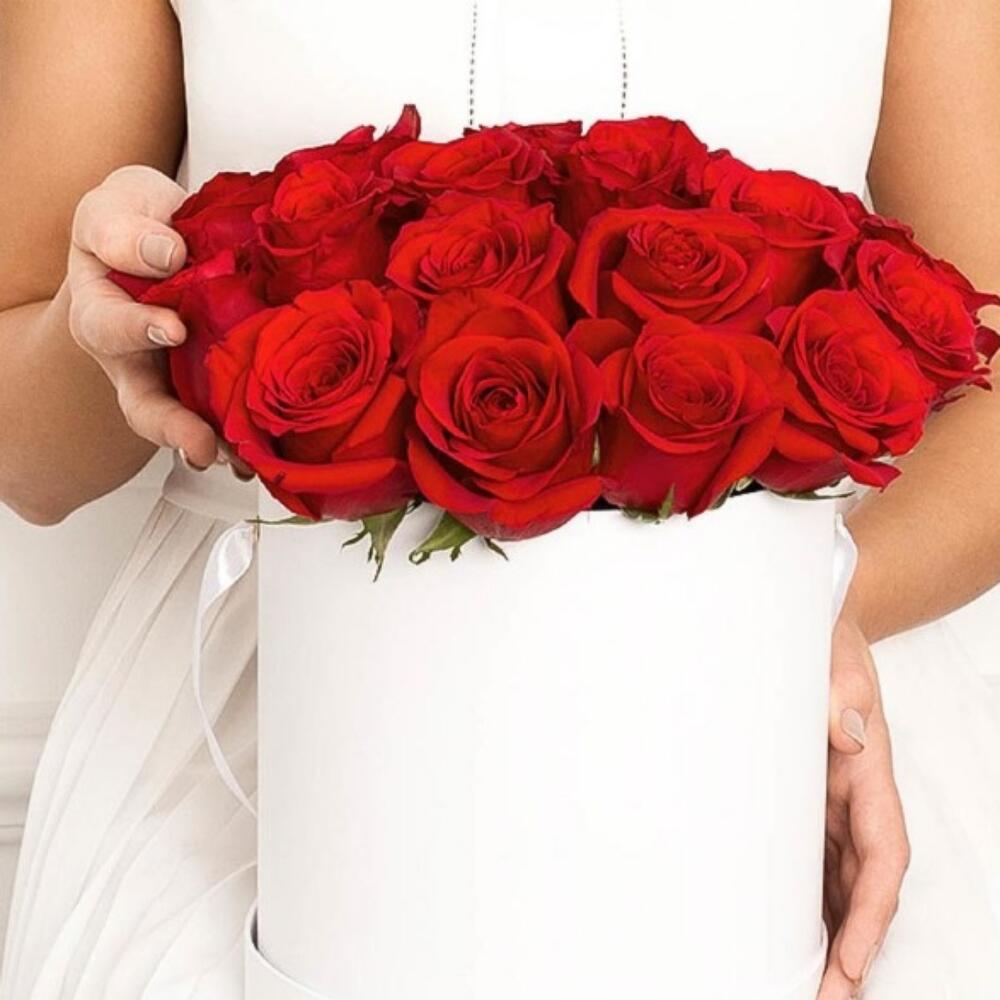 Красные розы в шляпной коробке PREMIUM