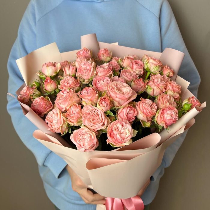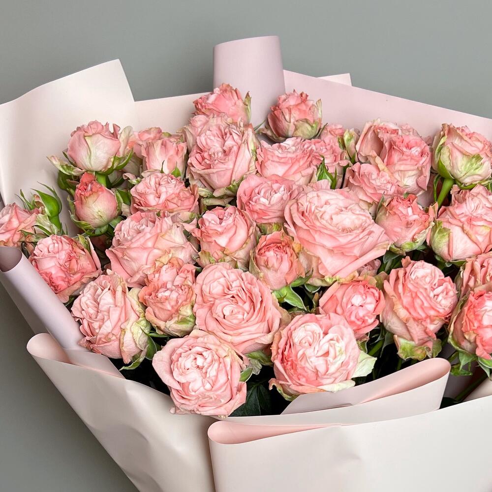 Роза кустовая пионовидная – 7 шт.Упаковка дизайнерская – 1 шт.комплимент от polyanka – 1 шт.