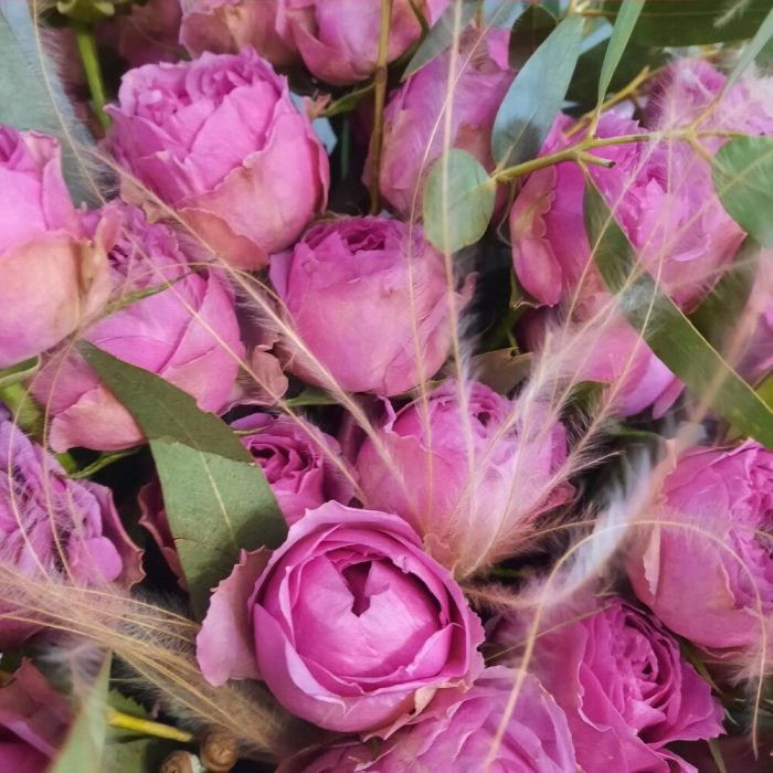 роза мисти бабл пионовидная – 17 шт.Эвкалипт – 5 шт.Ковыль – 5 шт.Упаковка дизайнерская – 1 шт.