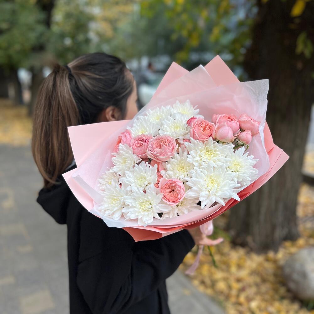 Гвоздики, Кустовые розы, Лизиантусы, Пионовидные розы, Розы