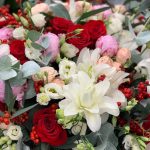 Альстромерии, Гвоздики, Кустовые розы, Лизиантусы, Розы, Хризантемы