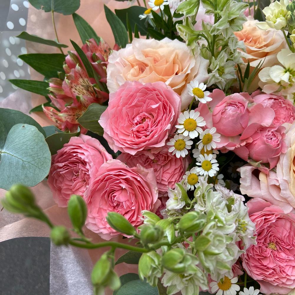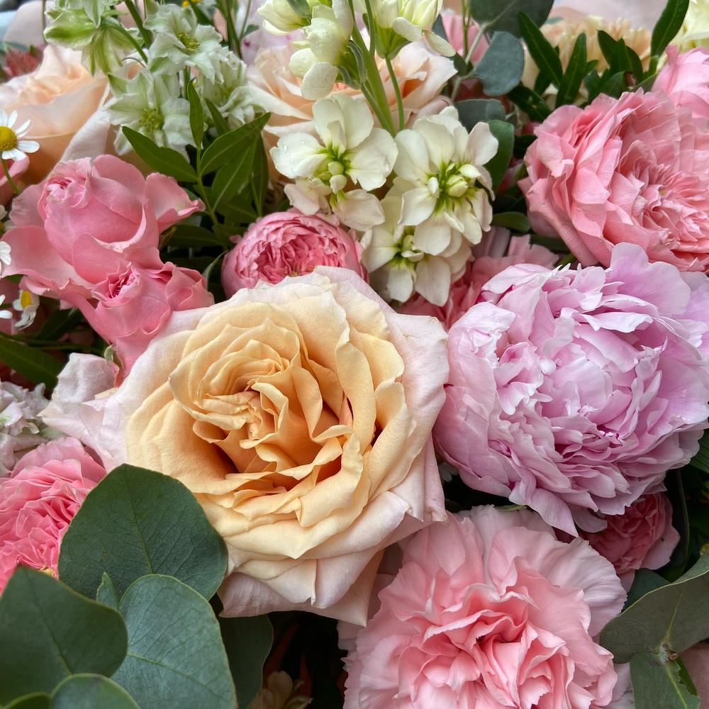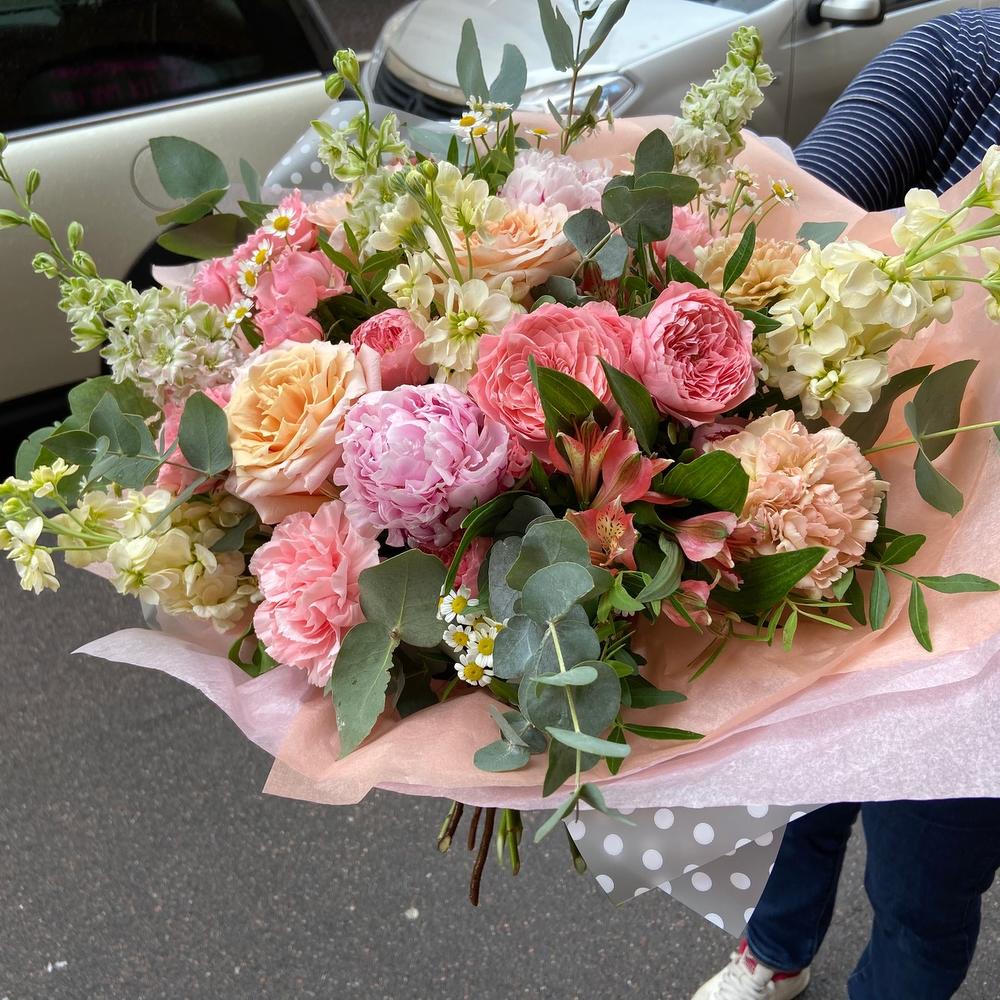 Гвоздики, Кустовые розы, Лизиантусы, Пионовидные розы, Розы