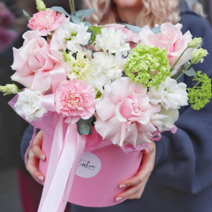 “В твоих глазах”: нежная шляпная коробка с французскими розами