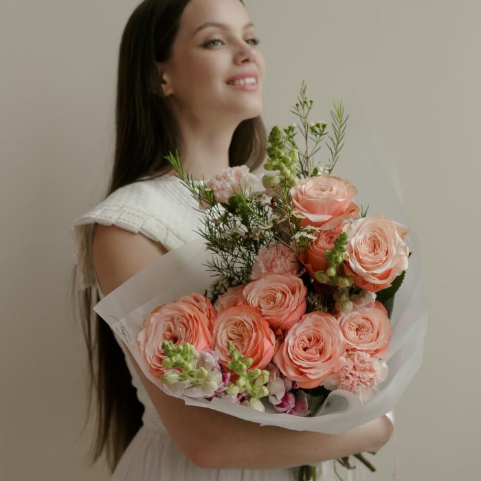 Мы используем для создания наших букетиков только качественный и свежий цветокСоздаем букеты с невероятной любовьюК букетику мы всегда прилагаем подкормку для цветочков – «chrysal”, чтобы они дольше сохраняли свою свежесть и красоту а также «Советы флористов» по уходу за срезанными цветочками Дополнительно к букетику Вы можете приобрести аквабоксы, транспортировочные коробки, крафтовые пакеты и вазы нужного размера