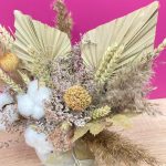 пальма стабилизированная – 2 шт.Хлопок натуральный – 3 шт.Лимониум – 5 шт.леукоспермум сухоцвет – 2 шт.Пшеница (сухоцвет) – 17 шт.папоротник искусственный – 2 шт.злаки сухоцвет – 5 шт.Оазис для сухоцветов – 1 шт.Кашпо керамическое – 1 шт.