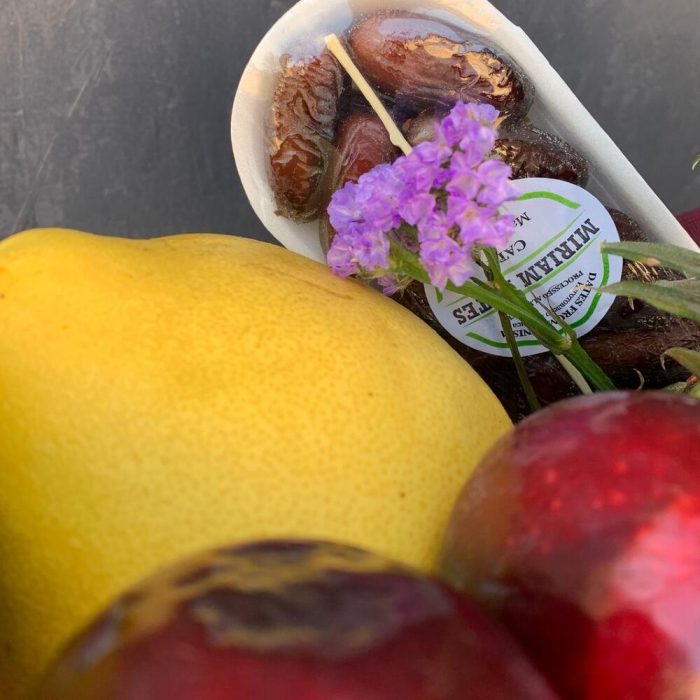 Ананас – 1 шт.Сухоцветы – 5 шт.Яблоко – 3 шт.Мандарин – 3 шт.Корзина плетеная – 1 шт.манго – 1 шт.Помело – 1 шт.Кокос – 1 шт.Слива красная – 5 шт.Драгон фрукт – 1 шт.финики 150 гр – 1 шт.
