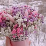 “Сиреневый туман” – композиция из гипсофилы в шляпной коробке
