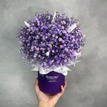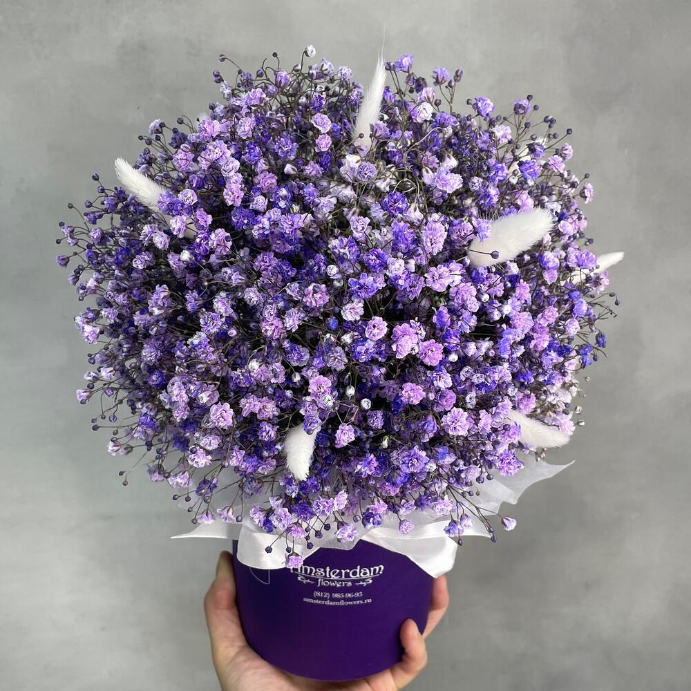 “Сиреневый туман” – композиция из гипсофилы в шляпной коробке