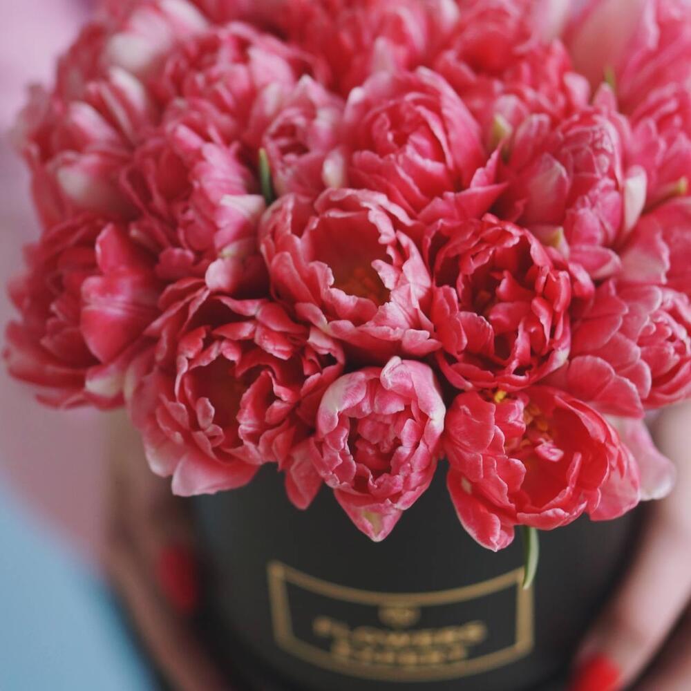 Пионовидные тюльпаныКоробка с цветамиТюльпаны